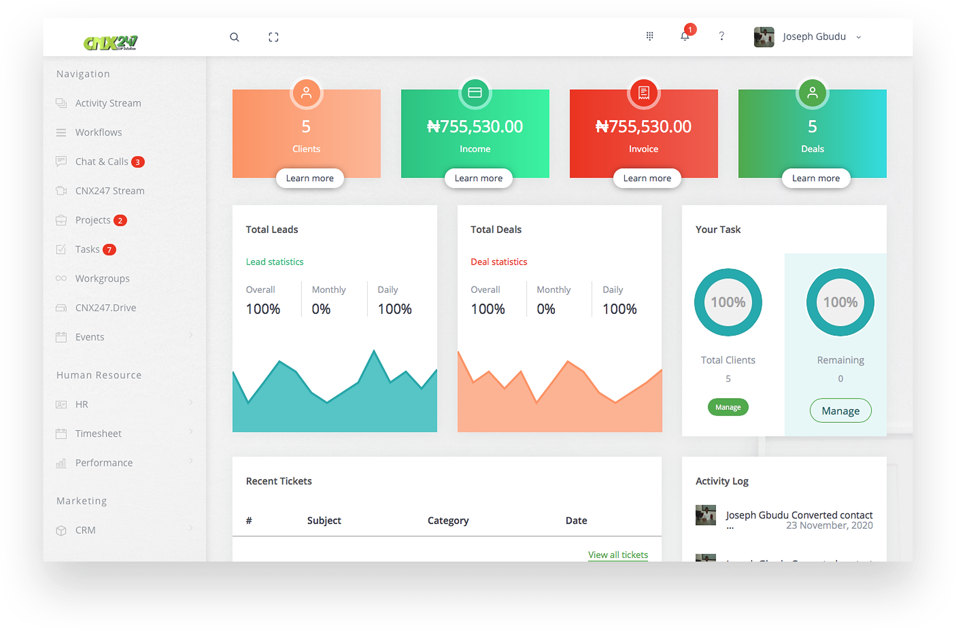 CNX247 provides you with a detailed overview of each customer, an ability to track your opportunities and deals in real time, and compile personalized invoices efficiently.
